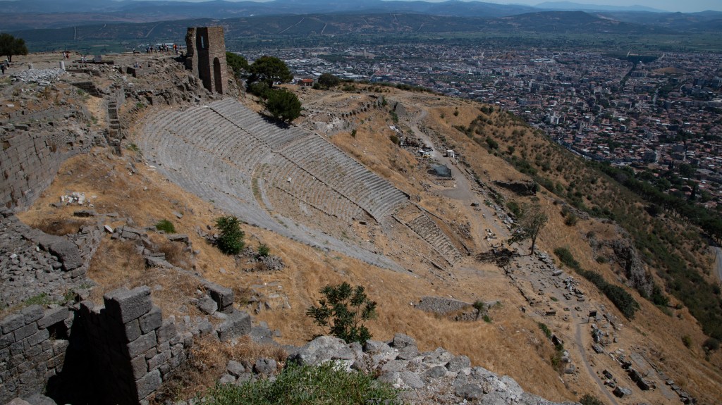 From Troy I was taken (different bus and guide) to Pergamon, an ancient Greek city perched high up on a hill above the city of Bergama more famous today as one of the 7 churches mentioned in Revelations and being referred to as “where satan lives” due to the pagan temples that are there. As far as ruined cities go this was pretty impressive. It’s as if I am going from basic to massive ruined cities (Morocco, Troy, Pergamon, Ephesus).